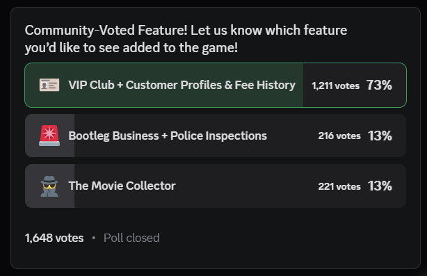 Our community poll on Discord wrapped up and the video store owners have spoken!